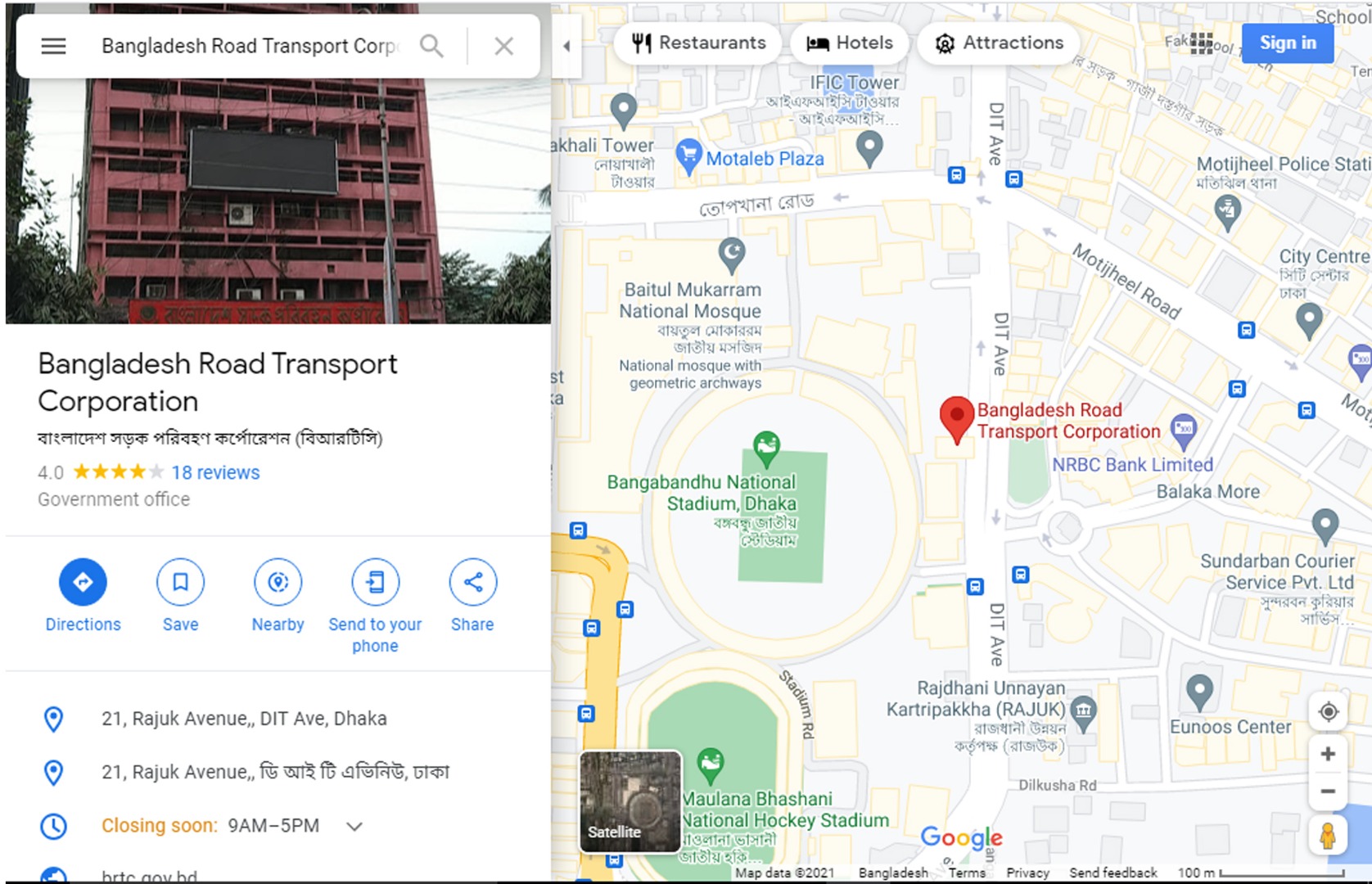 বিআরটিসি ভবন, ২১, রাজউক এভিনিউ, মতিঝিল, ঢাকা- ১০০০